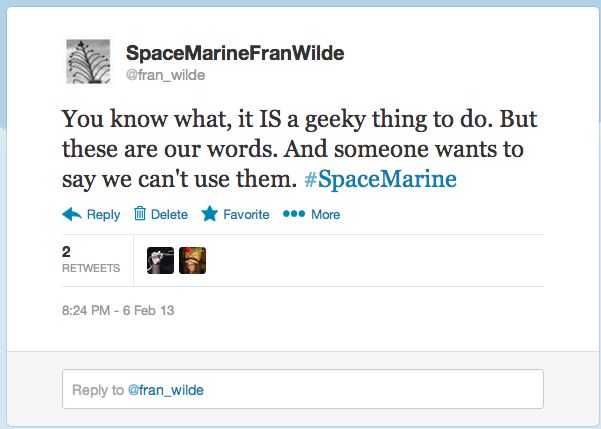 This blows my mind, especially given just how much Warhammer games rely on the SF and fantasy tropes created by those who came before them. They did not invent space marines, and while they’re most welcome to use them, this use should not be exclusive.