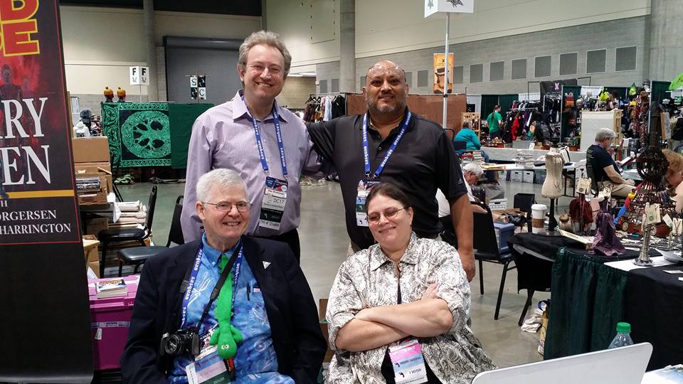 Coming up for air to report that I attended this year’s Worldcon, happily managed to mostly keep out of the controversies surrounding it, and had a great time hanging out with old friends and making new ones. I’m not very good at remembering to take pictures but, fortunately, I ended up in several taken by friends, enough to gather and post them here, mostly for my own records and ability to find them later.
