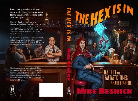 Here’s your first look at the cover of Mike Resnick’s The Hex Is In: The Fast Life and Fantastic Times of Harry the Book.