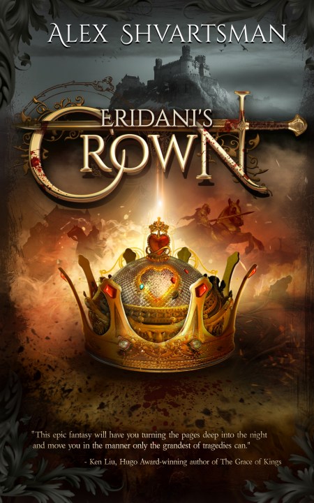 I can’t tease you like this and not tell you what the book is about. Eridani’s Crown is the story of a woman who is her world’s version of Alexander the Great or Napoleon — except she succeeds where they failed and actually takes over the entire world (conveniently, her world is a single Pangea-like continent called the Heart.)