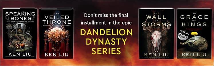 Finally, today is the release date for Speaking Bones, Ken Liu’s fourth and final installment in the Dandelion Dynasty epic fantasy/silkpunk series. I’ve been a huge fan of these books from the start and it’s amazing to watch a nearly-decade-long journey reach a satisfying conclusion.